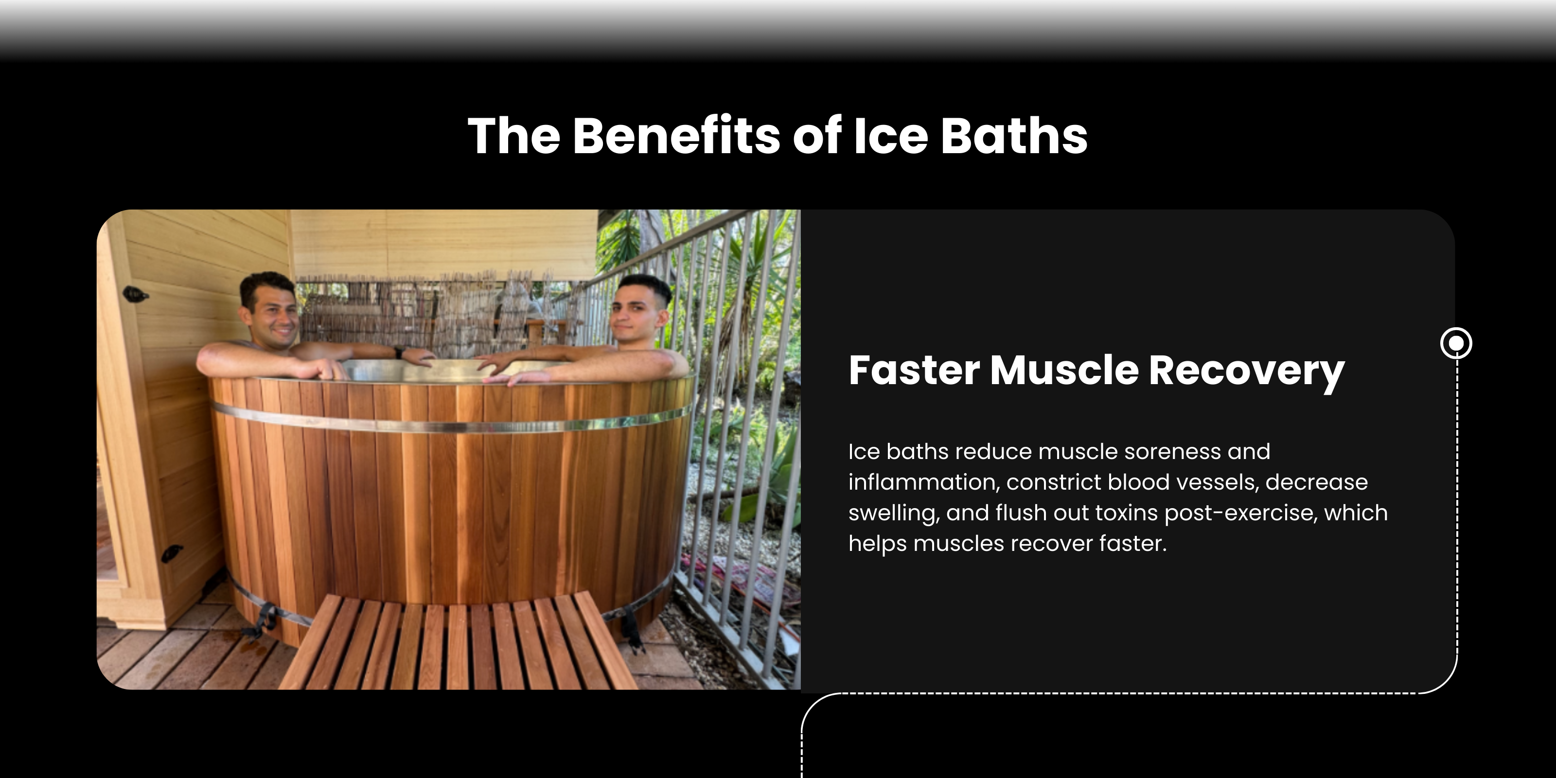- You will sleep better, feel calmer, more focused and even help your overall health by taking a dip in our ice bath for as little as 5 minutes a day!